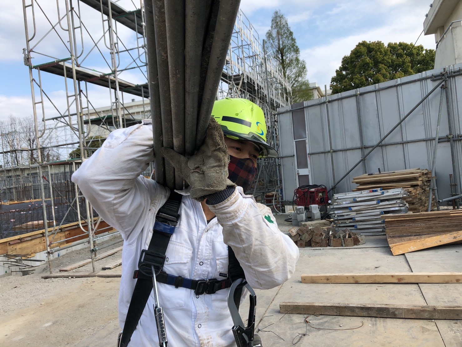 本日も神奈川県の某学校の新築現場にて外部足場の組立でした。